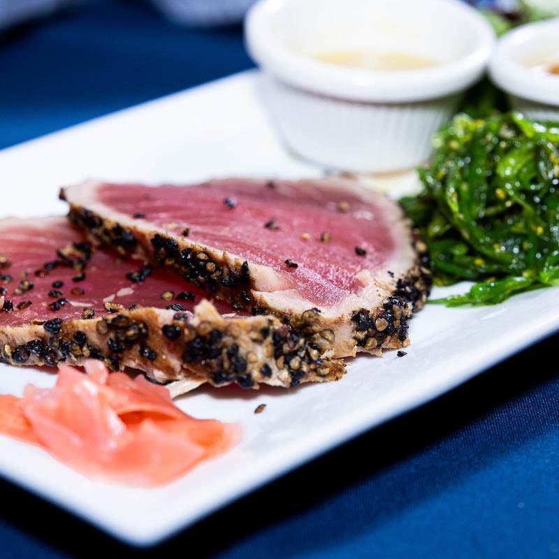 Sashimi grade, mixed greens, Thai dressing, wakame salad.