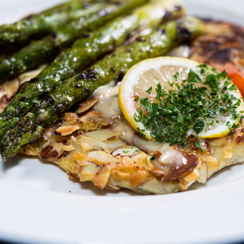 Choose your style: grilled, blackened, almandine (almonds, buerre Blanc, asparagus), or Oscar (hollandaise, crawfish tails, green peppercorn).